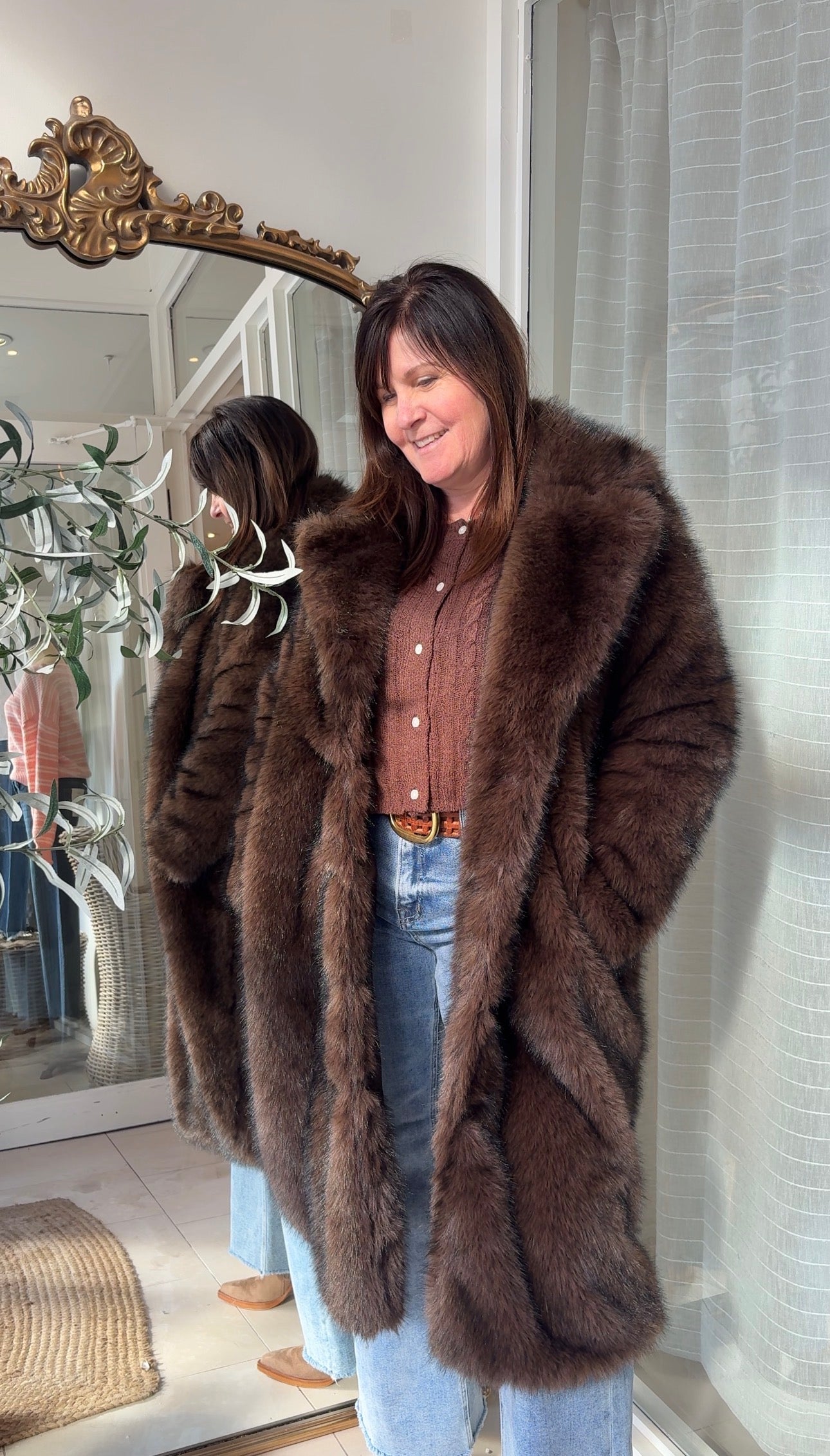 Wrap yourself in pure indulgence with this full-length faux fur coat that brings high-fashion glamour to any look. Crafted from sumptuous mink-inspired faux fur, it's surprisingly lightweight so you can layer it effortlessly over casual basics or dress it up for special occasions. Because sometimes the best accessory is one that makes you feel absolutely fabulous.