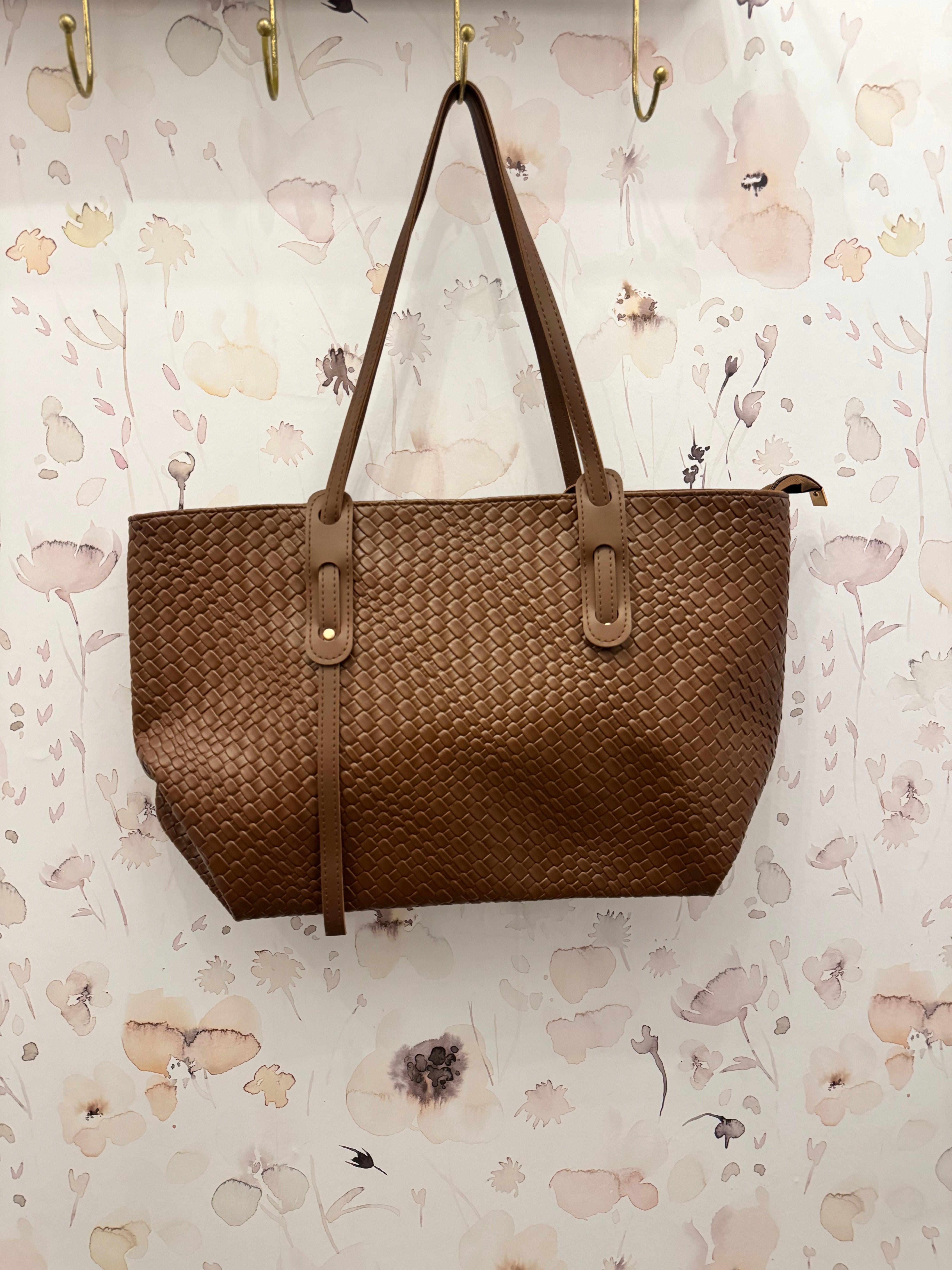 Meet your new favorite carryall. This faux leather 'weave effect' tote brings together playful charm and practical design—a zippered top keeps everything secure, and the snap extender lets you expand capacity whenever you need it. Stylish enough for any occasion, smart enough for everyday life.