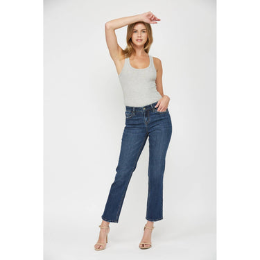 Crafted with a mid-rise silhouette and a straight-leg cut, these timeless jeans feature a vintage mid-wash with no distressing, for a classic and timeless look.