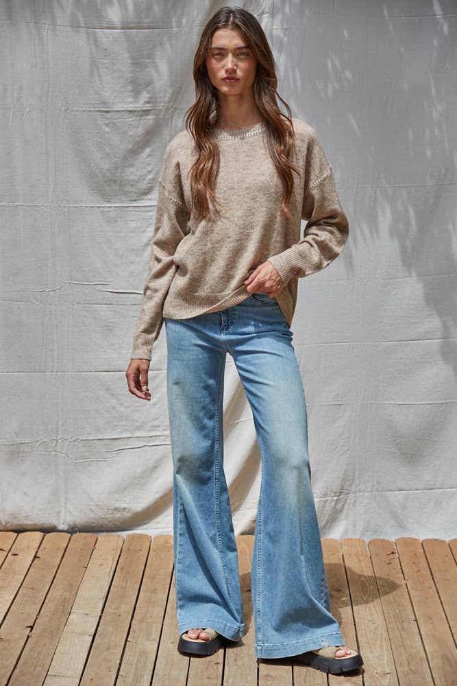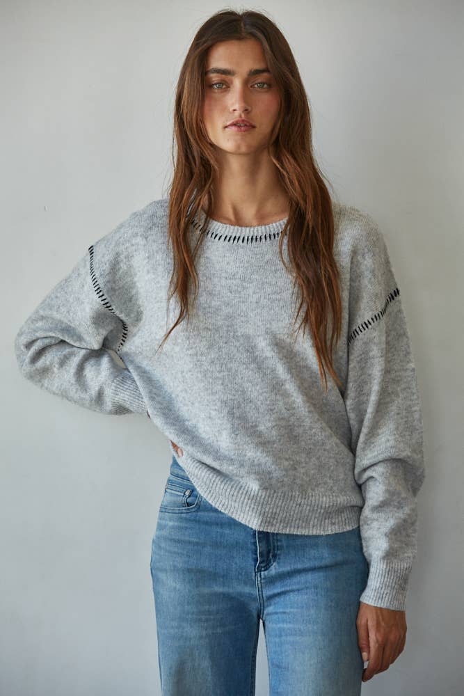 Cozy up in this charming pullover that blends comfort with personality. Crafted from a soft acrylic, polyester, and wool blend, this crew-neck sweater features eye-catching contrast stitching that adds a playful twist to your everyday wardrobe. Long sleeves keep you warm while the classic pullover silhouette works with everything in your closet.
