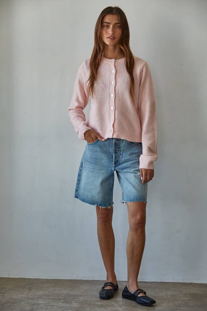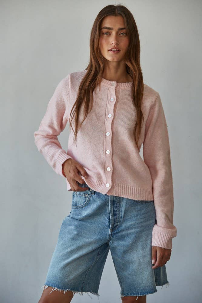 Wrap yourself in cozy charm with this Knit Cardigan, featuring a classic button-down design and a flattering round neck. The long sleeves add warmth without bulk, making it perfect for layering on chilly days or cool evenings. Whether you're dressing up for brunch or lounging at home, this cardigan brings effortless style and comfort to your outfit. Soft to the touch and easy to wear, it’s your new go-to for a playful yet polished look all season long.