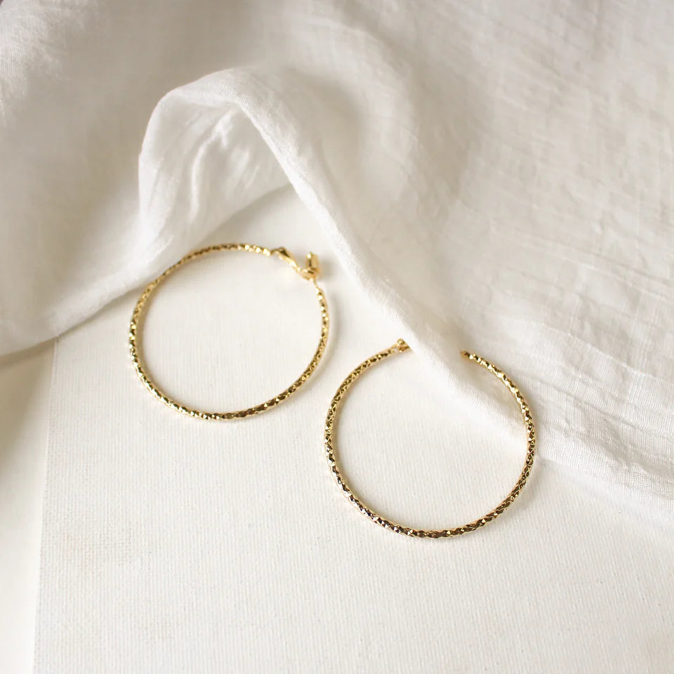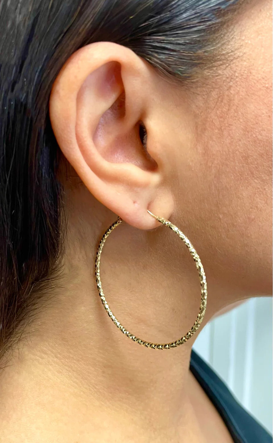 These classic hoops feature ribbed detailing and a post black closure. Perfect for everyday wear and make a great base for your eat stack.