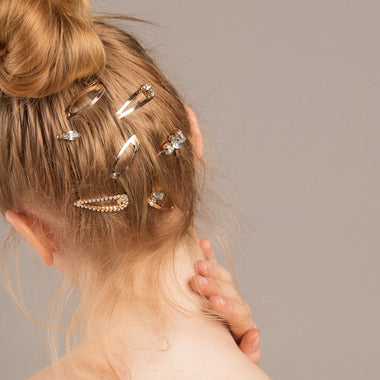Keep those flyaways in check with our Micro-Snap Clip Set—seven petite clips that pack serious style. Two sleek plain designs pair perfectly with five sparkly rhinestone-studded options, so you can match your mood or your outfit. Whether you're taming wispy strands or adding a glittery finishing touch, these tiny powerhouses deliver both function and flair.