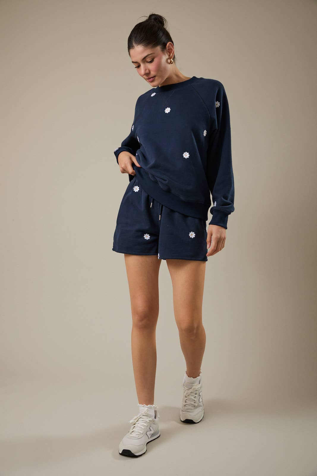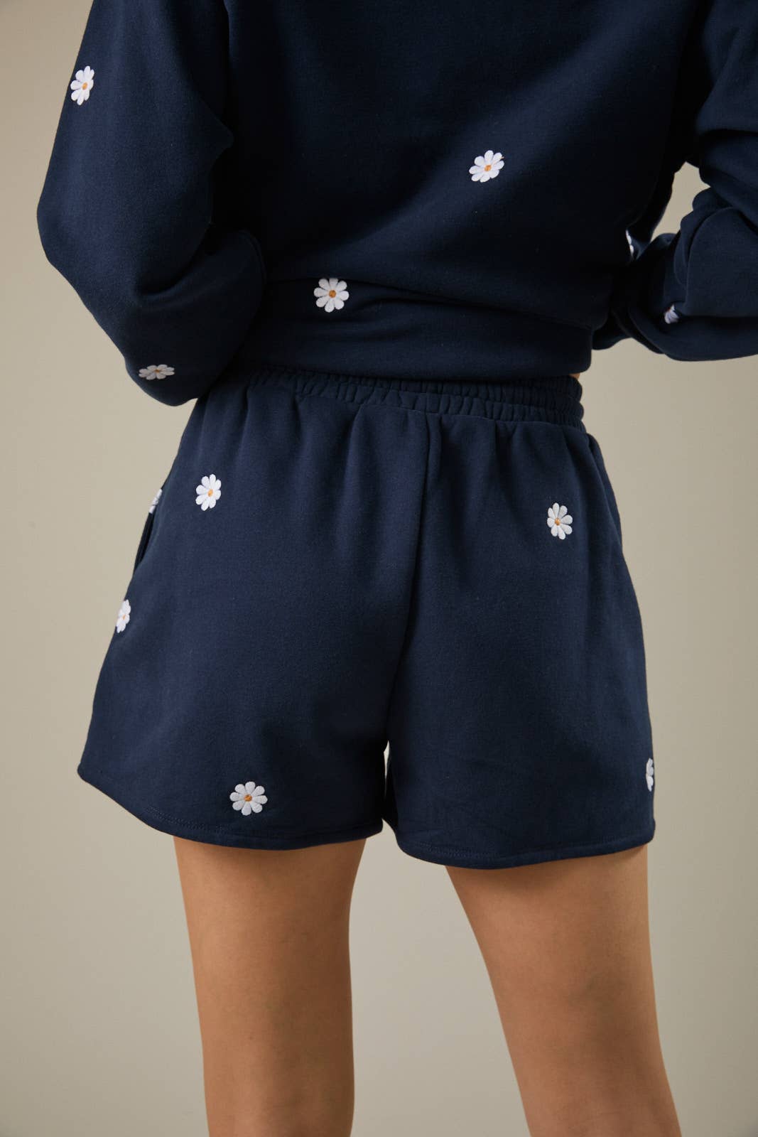 Grab these breezy jersey shorts with embroidered daisy motifs and an easy-adjust drawstring waist—your new go-to for relaxed style. Mix and match with the coordinating sweatshirt, or dress them down with a simple tee or tank. Comfy enough for all-day wear, cute enough for showing off.
