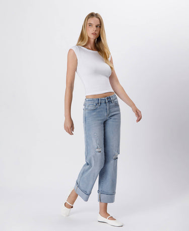 CUFFED ANKLE WIDE JEAN