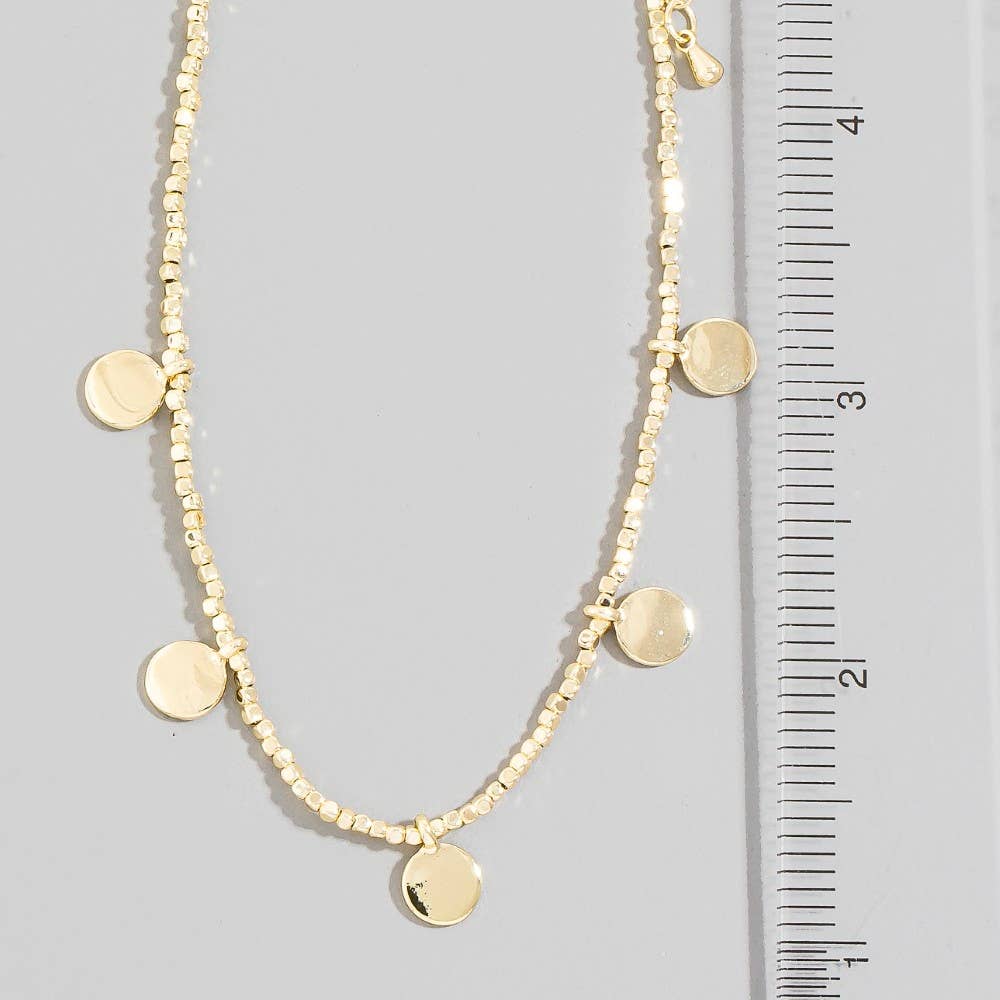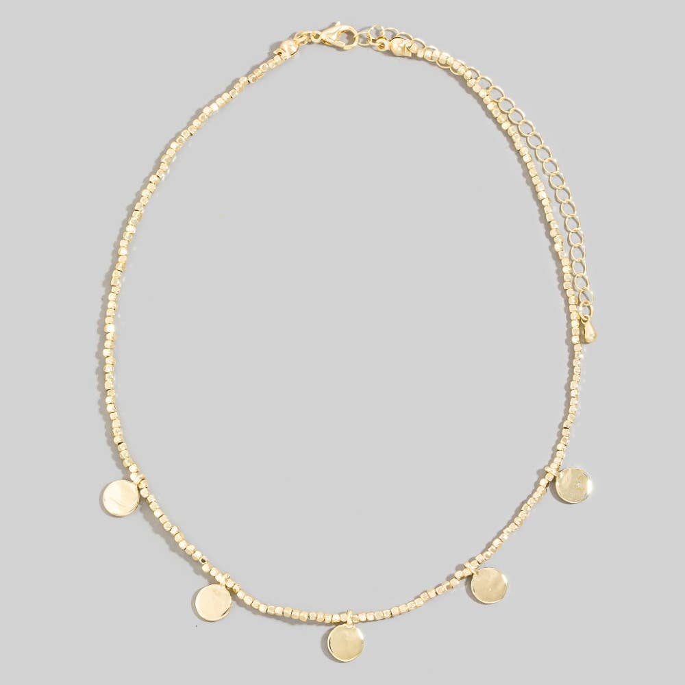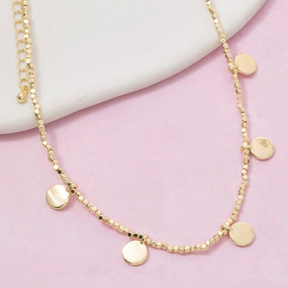 Elevate your everyday look with this playful beaded coin necklace. Featuring a striking beaded disc station design, it's the perfect accessory to layer, mix and match with your favorite pieces. The adjustable 14-inch length with 3-inch extension ensures a custom fit for any neckline. Versatile enough for casual days and polished enough for special occasions—your new go-to charm piece awaits.