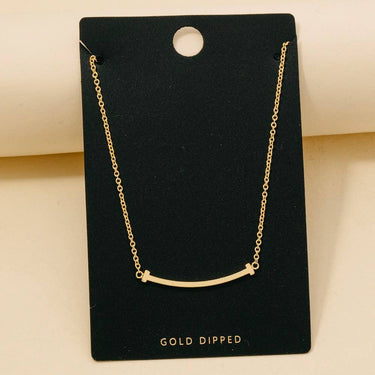 Elevate your look with this charming Curved Bar Pendant Necklace, designed to add a playful twist to your everyday style. Featuring a sleek, gold-dipped curved bar crafted from durable brass, it effortlessly balances modern elegance with a touch of whimsy. Whether you're dressing up for a night out or adding sparkle to your casual wear, this necklace is your go-to accessory for a dash of sophistication and fun. Its versatile design makes it easy to layer or wear solo, letting your unique personality shine through every outfit.