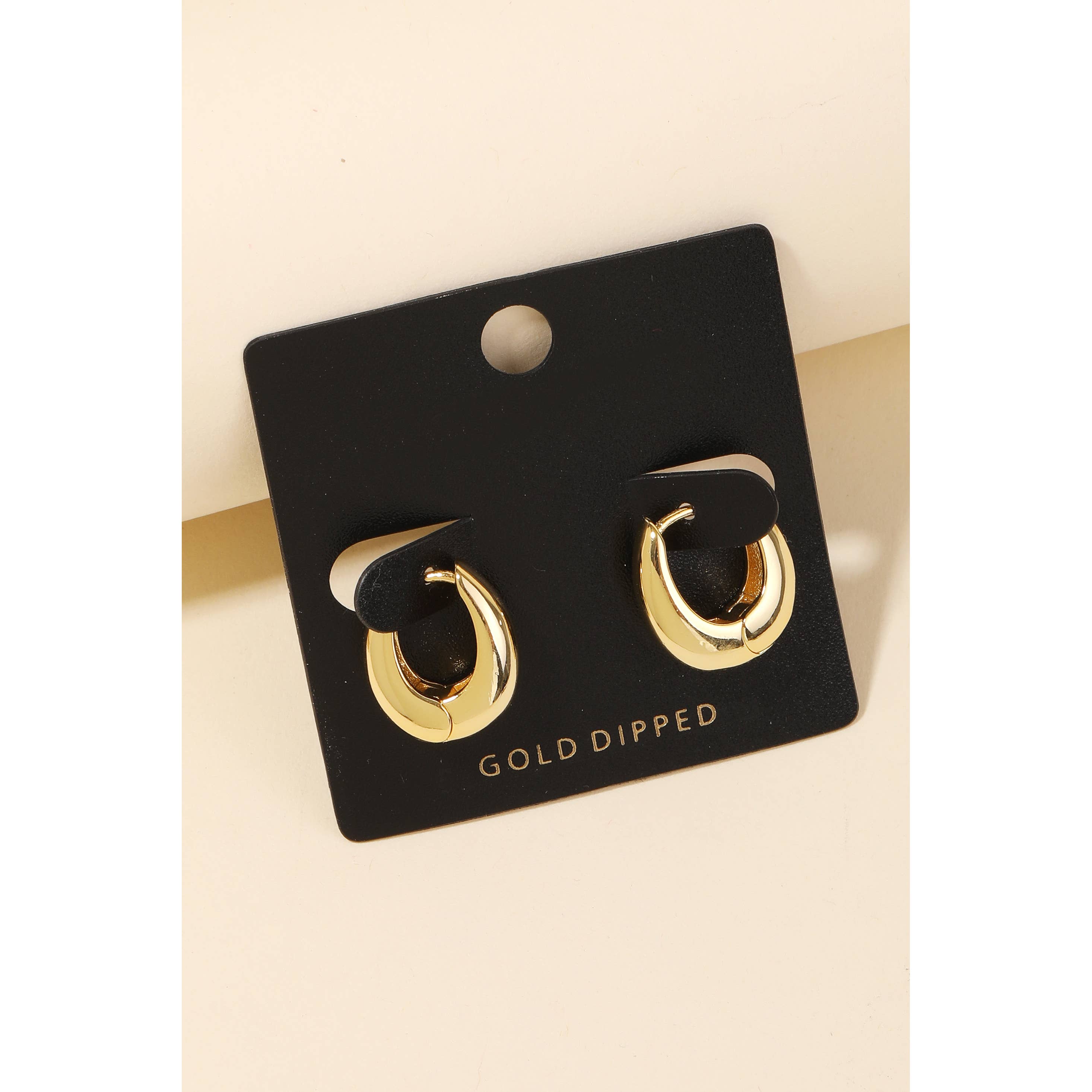 These timeless hoop earrings are your new go-to accessory for effortless elegance. Featuring a chic gold-dipped hinge design, they catch the light beautifully while adding instant sophistication to any look. Whether you're dressing up for a special night out or elevating your everyday style, these versatile hoops work with everything in your wardrobe. The smooth, polished finish gives them a luxe feel without the fuss, making them the kind of piece you'll reach for again and again. From casual brunches to formal events, these earrings are your secret weapon for looking put-together in seconds. A wardrobe essential that proves great style never goes out of fashion.