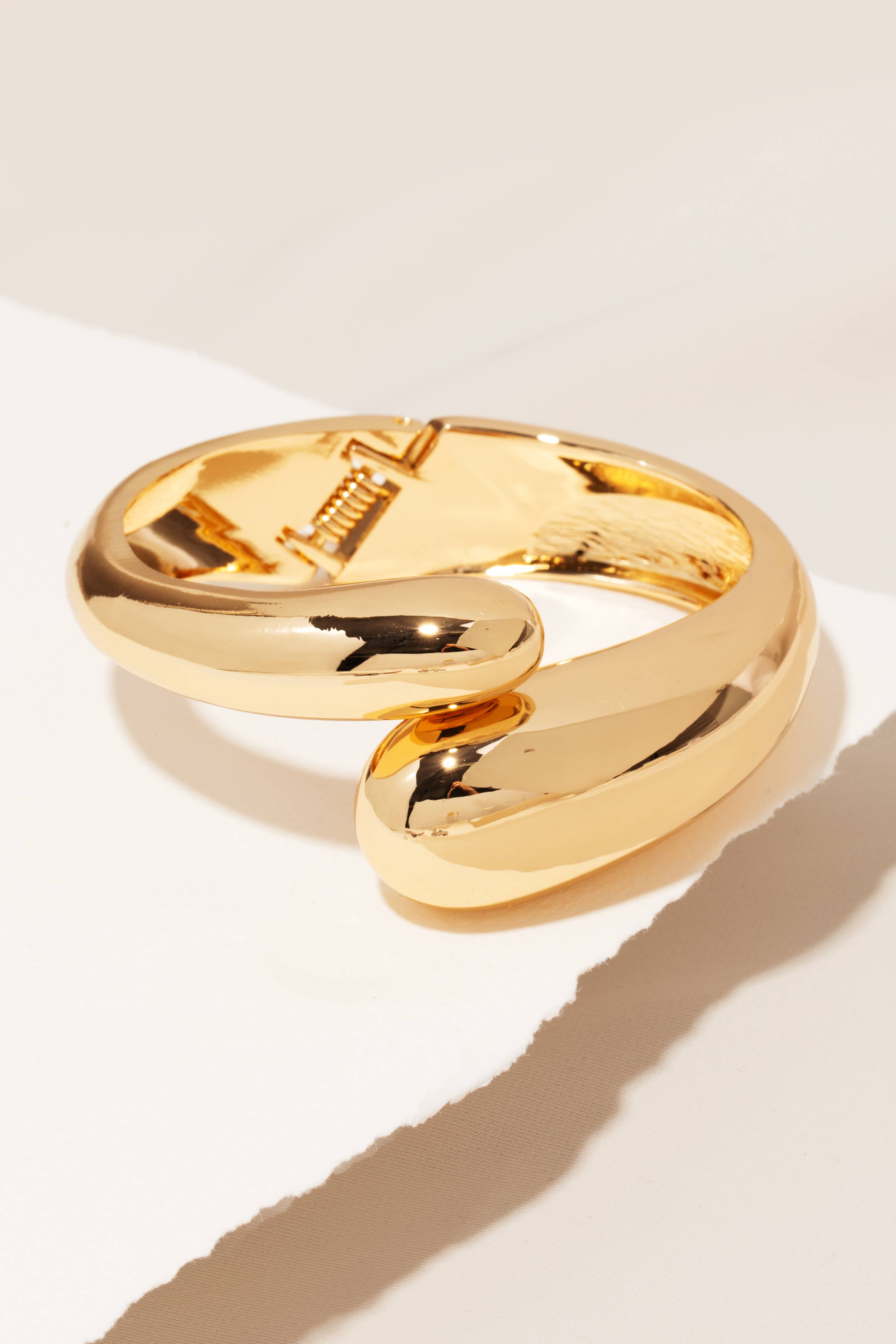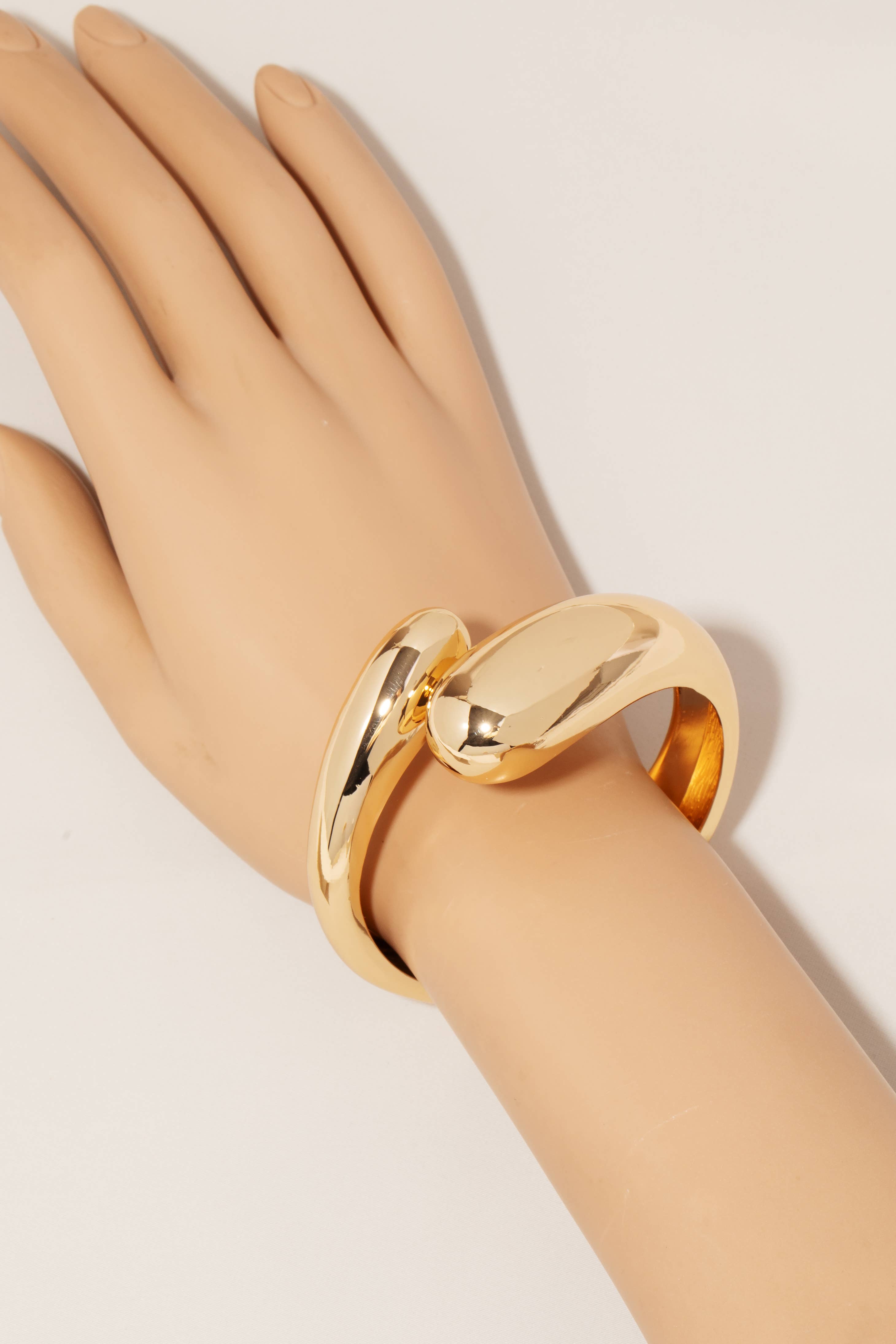 Make a statement with this eye-catching hinged cuff bracelet that's equal parts bold and beautiful. Featuring a striking metallic tear-drop design with a smooth hinged mechanism, this piece effortlessly transitions from everyday wear to special occasions. The unique sculptural shape catches the light beautifully, drawing compliments wherever you go. Whether you're layering it with other bracelets or letting it shine solo, this versatile accessory adds instant personality to any outfit.
