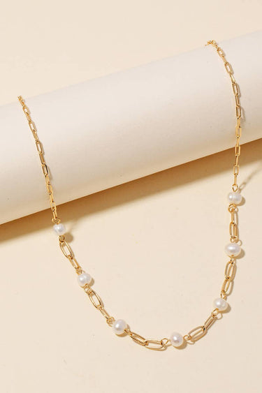 Perfect for any occasion, this chain necklace showcases an alluring pearl beaded half station design. It also includes a fresh water pearls. Take your style to the next level by incorporating this versatile chain necklace, a key element in achieving a polished look.