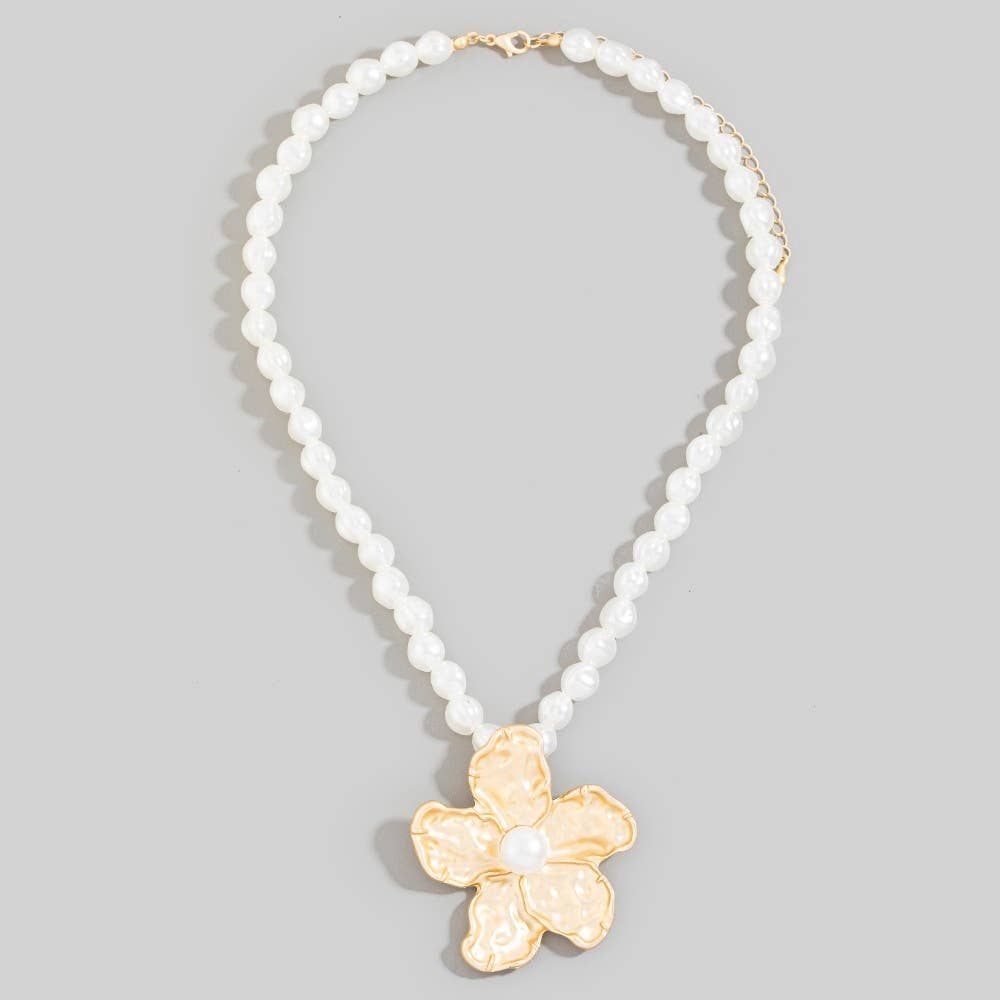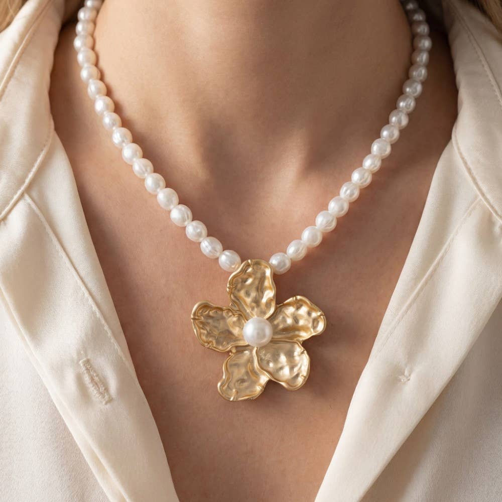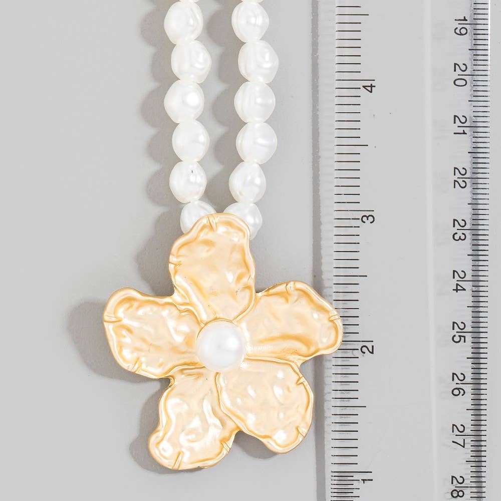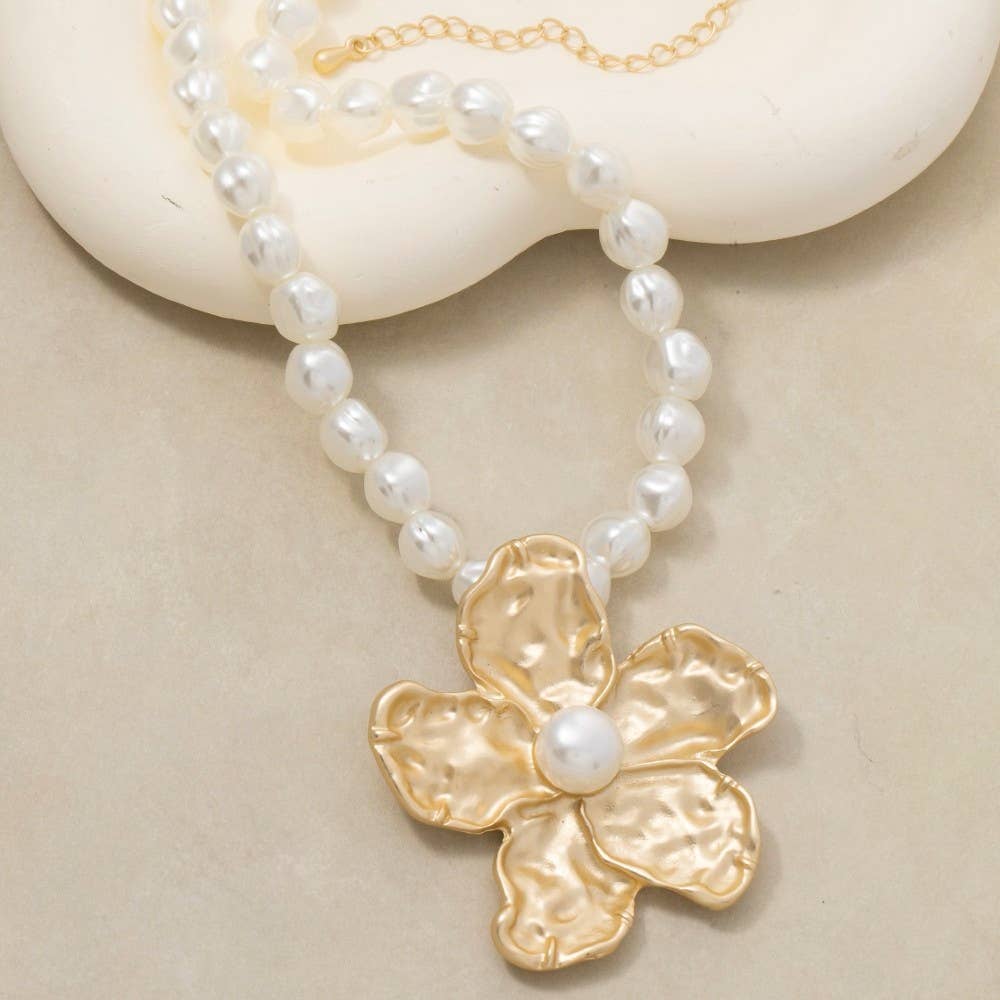 HAMMERED FLOWER WITH PEARL NECKLACE