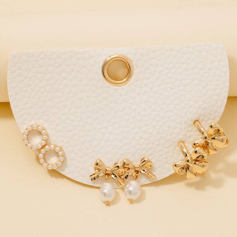 Elevate your accessory game with this delightful mixed earrings set that brings together the best of classic elegance and modern charm. Featuring lustrous pearls paired with charming ribbon bow designs, this collection gives you multiple styling options to match any mood or occasion. Whether you're dressing up for a special event or adding a touch of sophistication to your everyday look, these versatile pieces are your go-to companions. Mix and match to create endless combinations that reflect your unique personality. From work meetings to weekend brunches, this set ensures you're always accessorized with grace and flair. Perfect for gifting or treating yourself, these earrings prove that great style doesn't have to be complicated—just beautifully curated.