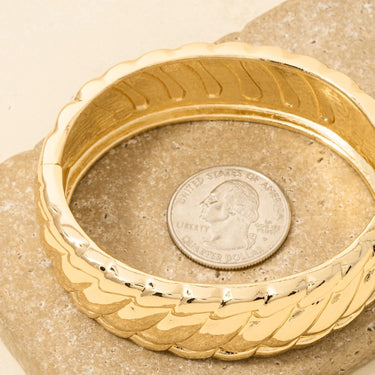 This Ribbed Bangle is your new go-to for adding a splash of sparkle and fun to any outfit. Featuring a striking metallic ribbed pattern, it’s designed to catch the light—and compliments! Whether you’re dressing up for a night out or jazzing up your casual wear, this bangle brings a playful twist to your style. Lightweight and easy to wear, it’s perfect for stacking or shining solo. Let your wrist do the talking and turn everyday moments into a little celebration of glam!