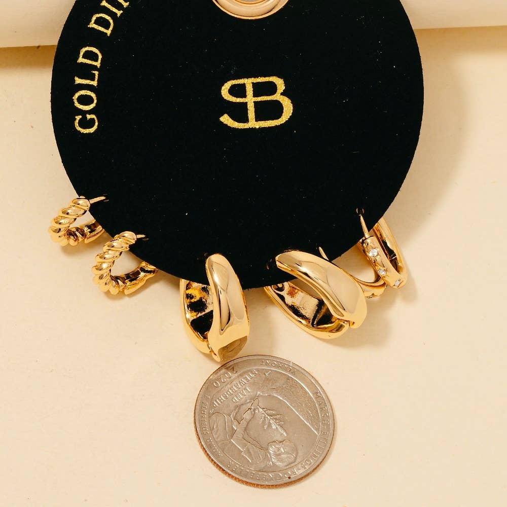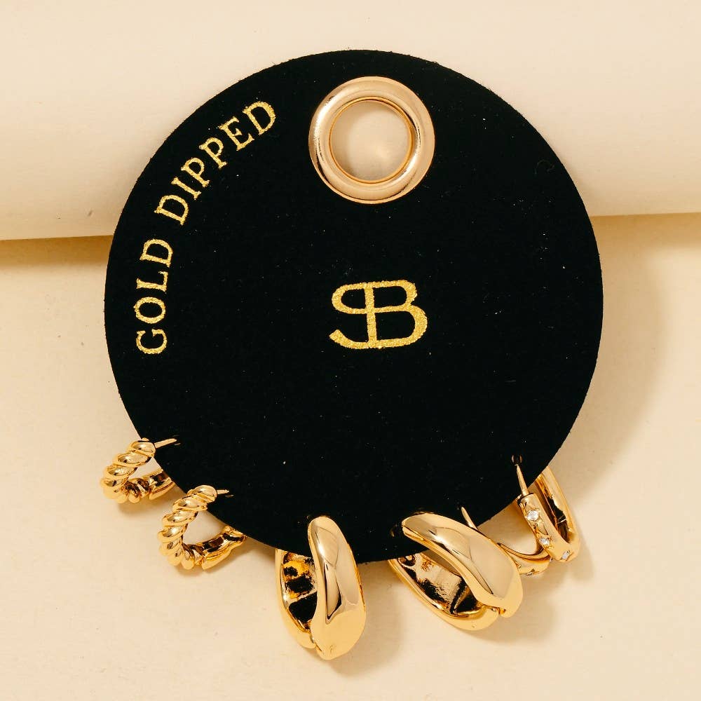 Secret Box Gold Dipped 3 Pair Hinge Hoop Earrings Set