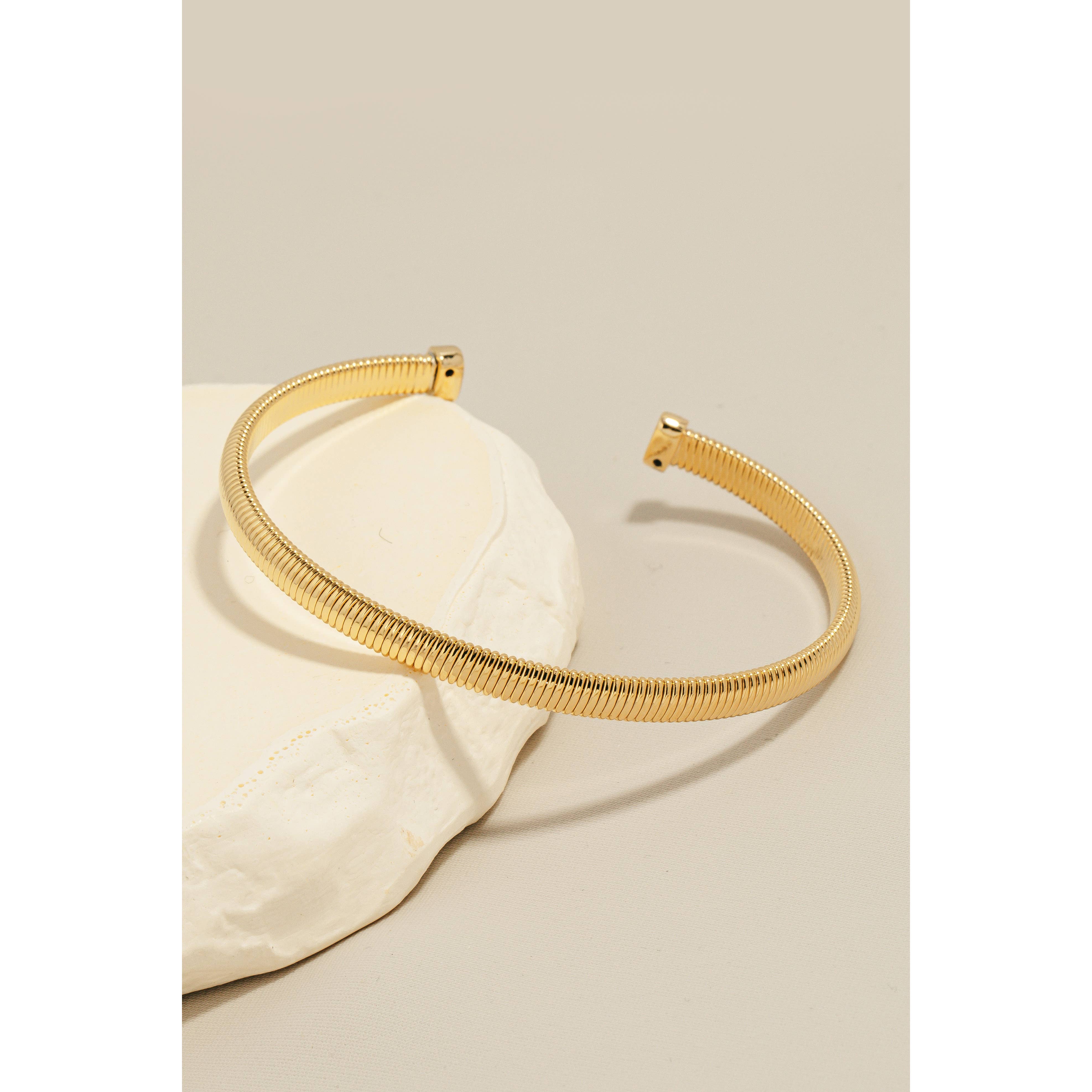 Effortlessly chic, this cuff bracelet incorporates a solid coiled metallic design that catches the light with every gesture. A stylish accessory that's perfect for complementing any outfit you wear, whether you're dressing up for a special occasion or adding polish to your everyday look. The sculptural coil pattern gives it an artistic edge that works beautifully solo or stacked with other bracelets for a bolder statement. Crafted from 100% brass, this piece is built to last while maintaining its lustrous finish.