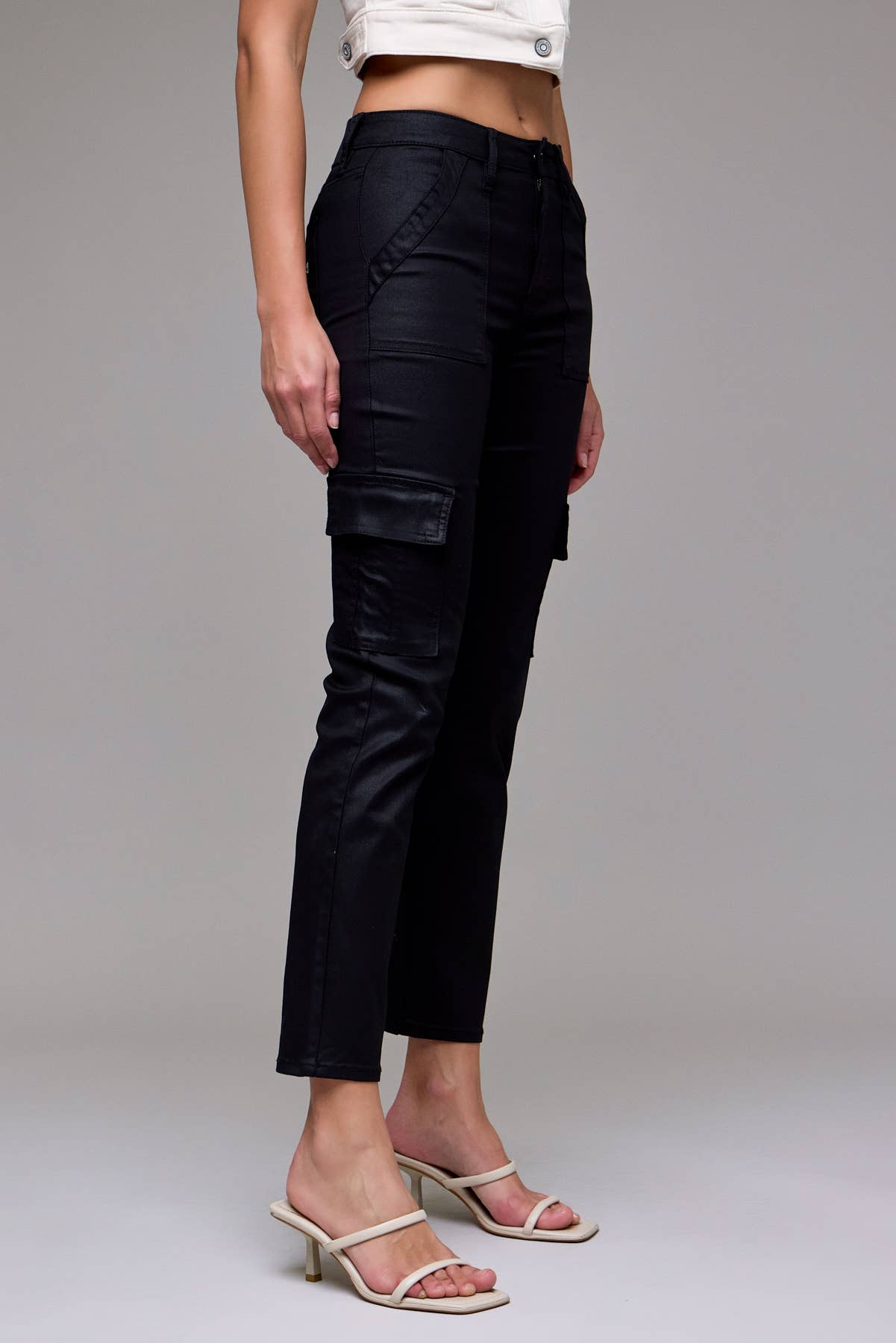 Waxed Cotton Cargo Cigarette Skinny Denim