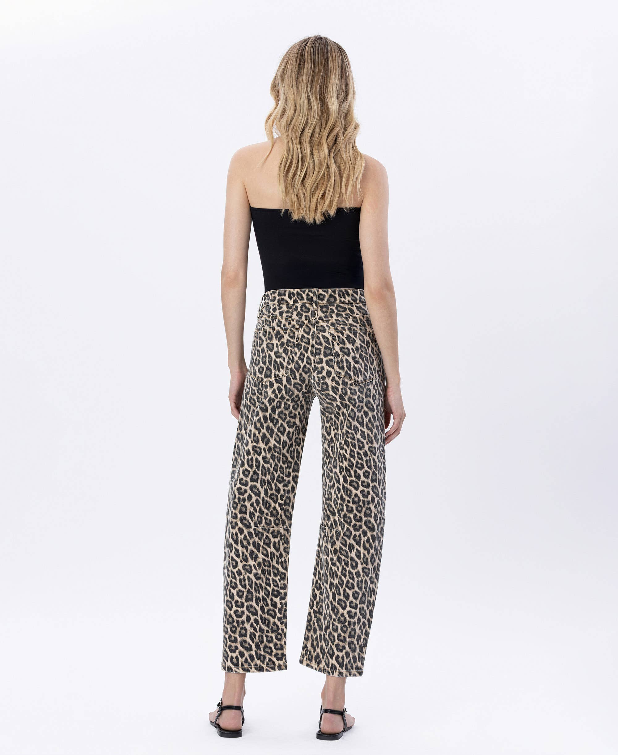Make a bold statement with these high rise barrel leg jeans—the perfect blend of retro vibes and modern edge. Crafted from comfort stretch denim, these jeans move with you while keeping their shape, so you can go from brunch to night out without a second thought. The high-rise waist flatters your silhouette and pairs beautifully with crop tops, fitted, or tucked-in sweaters. The cropped barrel leg hits at just the right spot (27 1/2" inseam) for a trendy, intentional look that works with sneakers, boots, or heels. The leopard print adds that fun touch that transforms any outfit from basic to unforgettable. Whether you're channeling '90s nostalgia or creating your own style story, these jeans are your new go-to piece.