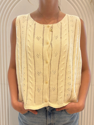 Add a dash of playful charm to your wardrobe with this sleeveless sweater vest top. Featuring a classic button-down front, it’s made from 100% soft cotton knit that feels as good as it looks. Perfect for layering over your favorite tees or blouses, this vest adds a cozy yet stylish twist to any outfit. Whether you’re dressing up for a casual day out or just want a fun, comfy layer, this sweater vest brings effortless cool to your look.