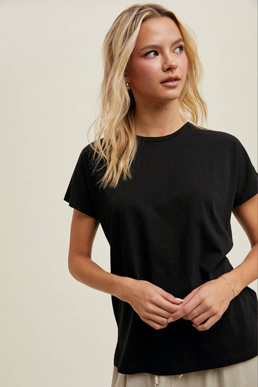 This comfy tee has a short sleeve and a slub texture, with a relaxed, boyfriend fit and side slits for added style. Made of 68% cotton and 32% polyester, it's perfect for everyday wear!