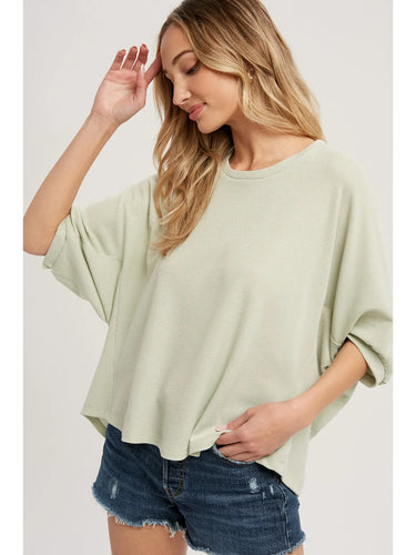 Snuggle up in this thermal knit top! You'll love the crew neckline and batwing sleeves for that chill vibe. With its hi-lo hem and oversized style, you're sure to be living your coziest life.