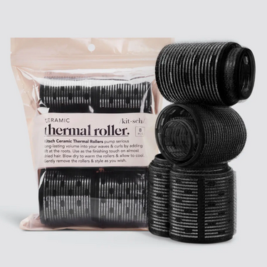 The KITSCH ceramic thermal rollers pump serious long-lasting volume into your waves and curls by adding lift at the roots. Use as the finishing touch on almost dried hair. For the best results on curly hair textures, blow-out hair smooth and apply rollers while hair is still warm.
