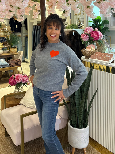 Wrap yourself in cozy comfort with this charming long-sleeve crew neck sweater, complete with a sweet red heart design. Perfect for layering or wearing solo, it's the go-to piece that effortlessly transitions from casual days to heartfelt moments. Soft, versatile, and undeniably lovable.