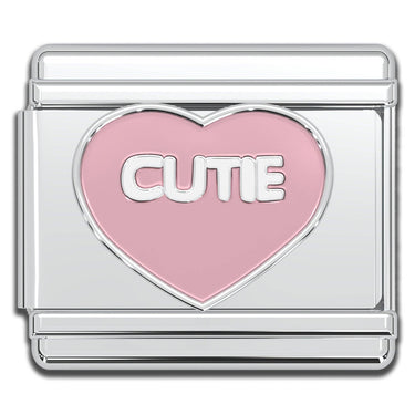 Silver Italian Charm Pink "CUTIE"Heart
